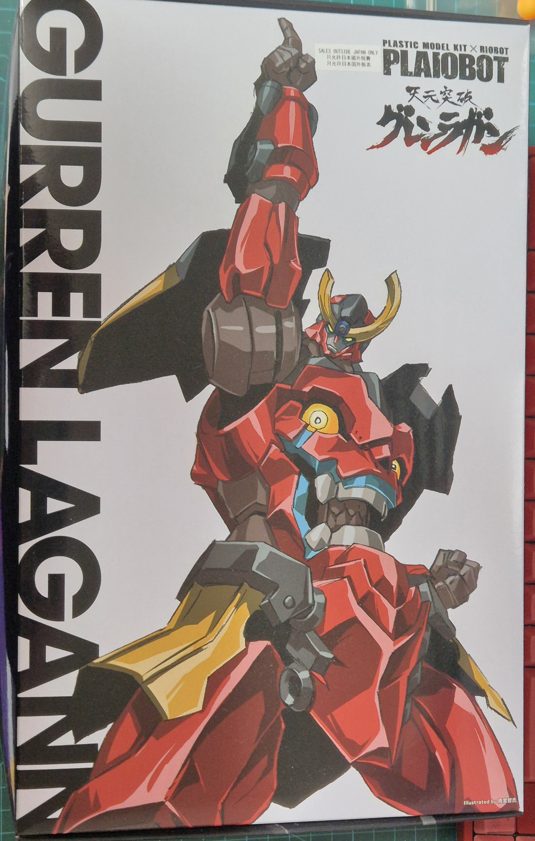 전체적으로 PLAIOBOT 천원돌파 그렌라간 박스아트는, Gurren Lagann의 핵심 테마(나선·돌파·열혈)를 시각 언어로 완벽하게 번역한 수작입니다. 특히 빨강+금색 조합과 드릴 포즈는 진짜 잊을 수 없을 정도로 강렬해요.