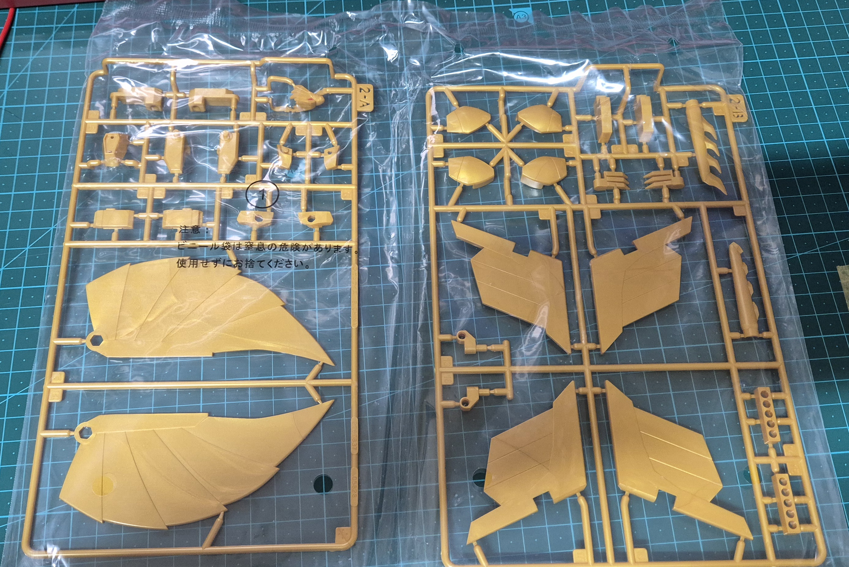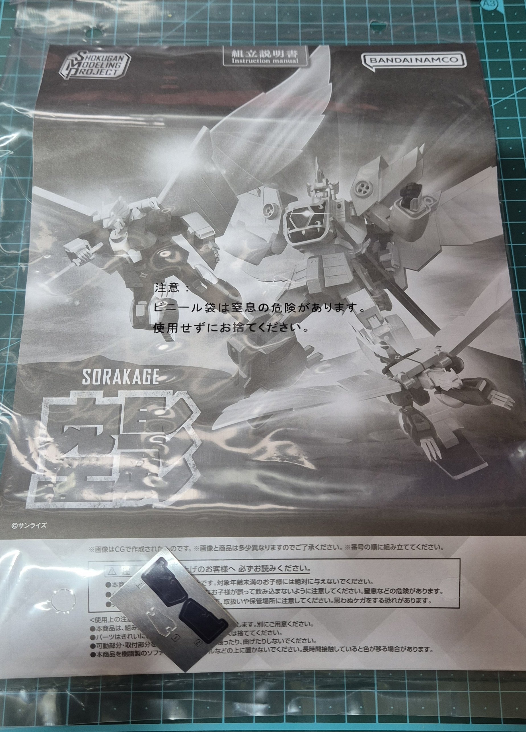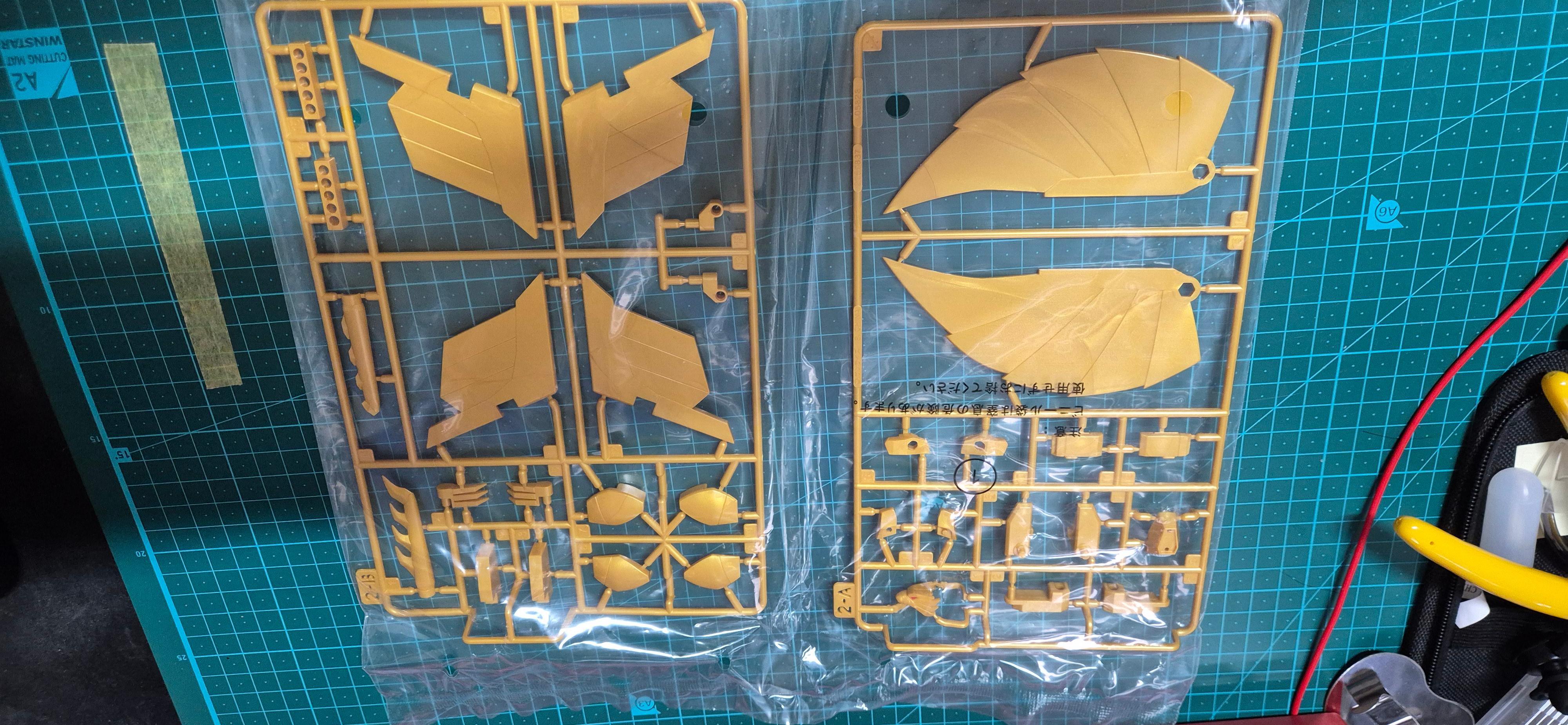SMP 소라카게는 비행 형태인 '새' 모드와 로봇 모드를 오가는 가변형 기체입니다. 박스를 열면 가장 먼저 눈에 띄는 것이 화려한 금색 사출과 날개 부품인데요. 프리미엄 반다이 한정판답게 색분할이 꼼꼼하게 되어 있어 가조립만으로도 충분히 화려한 외관을 자랑합니다.